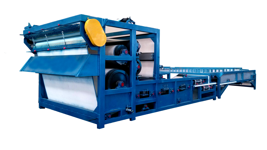 壓濾機(jī)是洛陽(yáng)隆中重工在引進(jìn)壓濾技術(shù)基礎(chǔ)上研制成功的新機(jī)型, 該設(shè)備是通過兩條濾帶纏繞在系列順序排列、大小不等的輥輪上,利用濾帶間的擠壓和剪切作用,來脫除料漿中水分的種壓濾設(shè)備,具有著能連續(xù)作業(yè)、自動(dòng)化程度高、節(jié)能、使用維護(hù)方便等優(yōu)點(diǎn),是種進(jìn)行污泥脫水減量化處理的好設(shè)備。